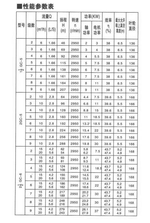 GC型水泵為單吸多級離心泵,可輸送最高溫度為110℃清水或物理化學性質(zhì)類似清水的液體之用,適用于鍋爐給水、工廠、城市及礦山井下提水排水。揚程為46米至476米,流量為6米3/小時一55米3/小時。